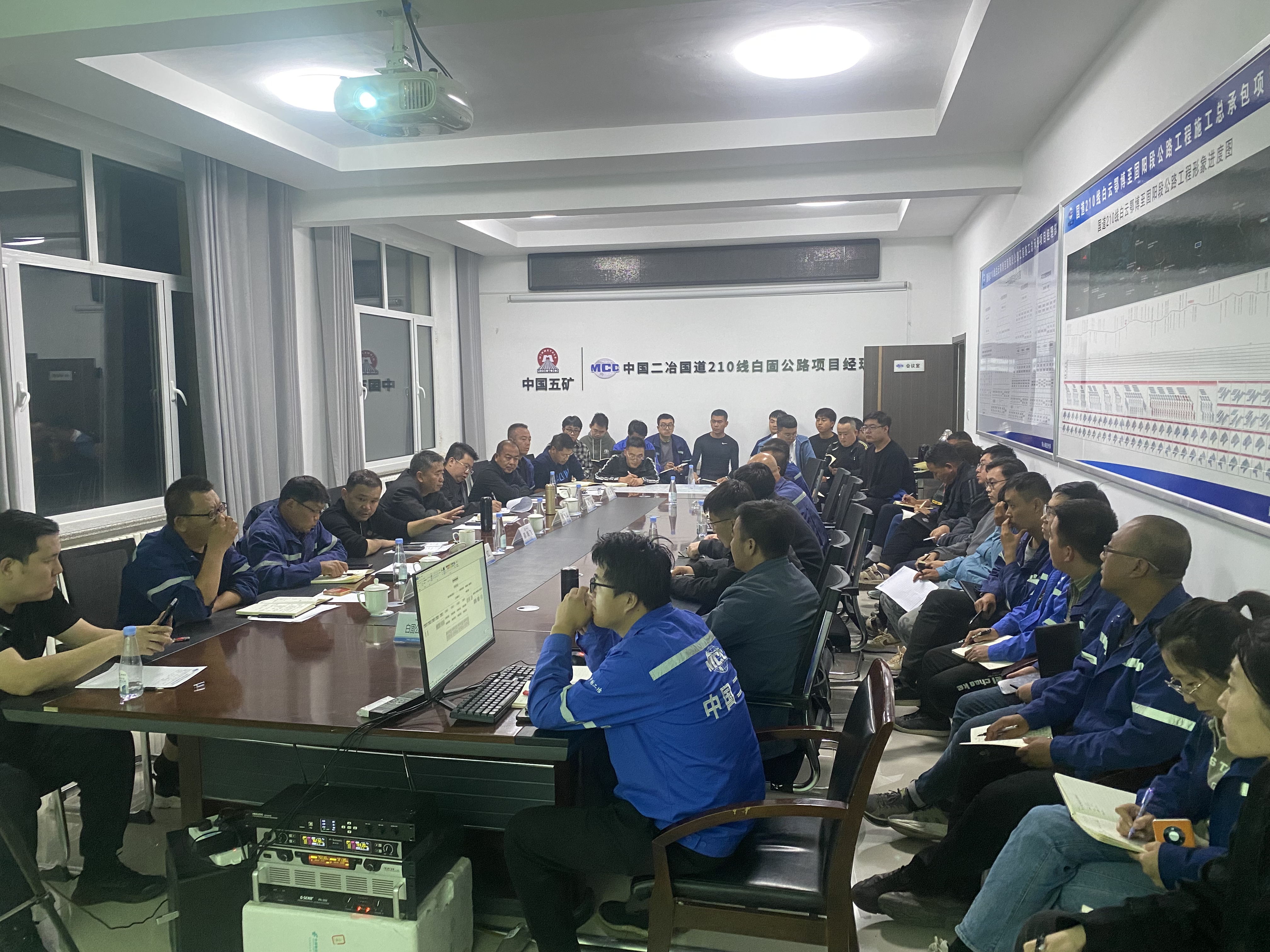10月8日,路桥分公司总经理郝海飞、副总经理李智超带领机关各部室负责人到白固项目组织召开紧急施工专题会。