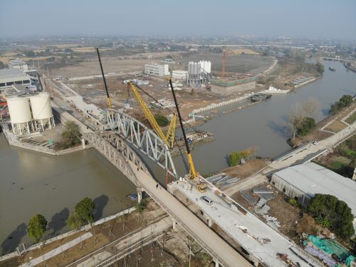 随着重达155吨的重型主桁架徐徐升起,精准吊装就位,这意味着经过30多天的奋战后,沙村大桥钢桁架吊装工程跨越施工难度,取得阶段性突破,也为主体顺利完工迈出了至关重要的一步。