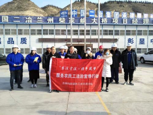 12月23日,路桥公司兰州柴家峡大桥项目部与兰州市西固区西柳沟街道总工会联合举办服务农民工法治宣传活动。