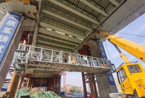 该项目设计图纸范围内共有3台不同类型检查车,其中A类为直线行走不过墩式检查车,B类、C类为伸缩过墩式检查车。A类检查车布置在主跨13-14#桥墩、B类检查车布置在11-13#桥墩、C类检查车布置在14-17#桥墩。钢箱梁底最大检查车为10吨,施工中采用50吨汽车吊配合安装。为保障3台钢结构检查车安装任务顺利完成,项目部高效配置人、材、机资源,提前对施工人员进行入场安全教育和安全技术交底,对检查车相关操作人员组织开展了检查车使用和安全操作规程培训。施工中坚持24小时连续作战,针对近期昼夜温差大、风雪交加、沙尘暴恶劣天气给项目施工带来不便的实际,为确保项目安全有序推进,项目部加强吊装作业全过程检查,妥善安置易受沙尘影响的特种设备和临时设施,不断细化工序衔接,严格把控施工安全与质量,确保围挡、棚架、临时搭建物等易被风吹动的搭建物紧固稳定,有效防范和化解施工中的各类风险隐患,优质高效完成了3台钢结构检查车安装任务,为项目后序钢箱梁涂装等施工任务如期完工提供了强有力的保障。