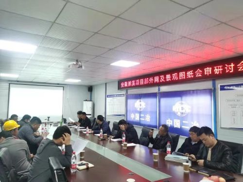 4月1日上午,路桥分公司安徽濉溪项目部组织召开外网及景观工程图纸会审研讨会,建设单位、监理单位、设计单位、项目部领导班子成员、全体技术人员及各劳务分包单位技术人员参加了此次分析研讨。