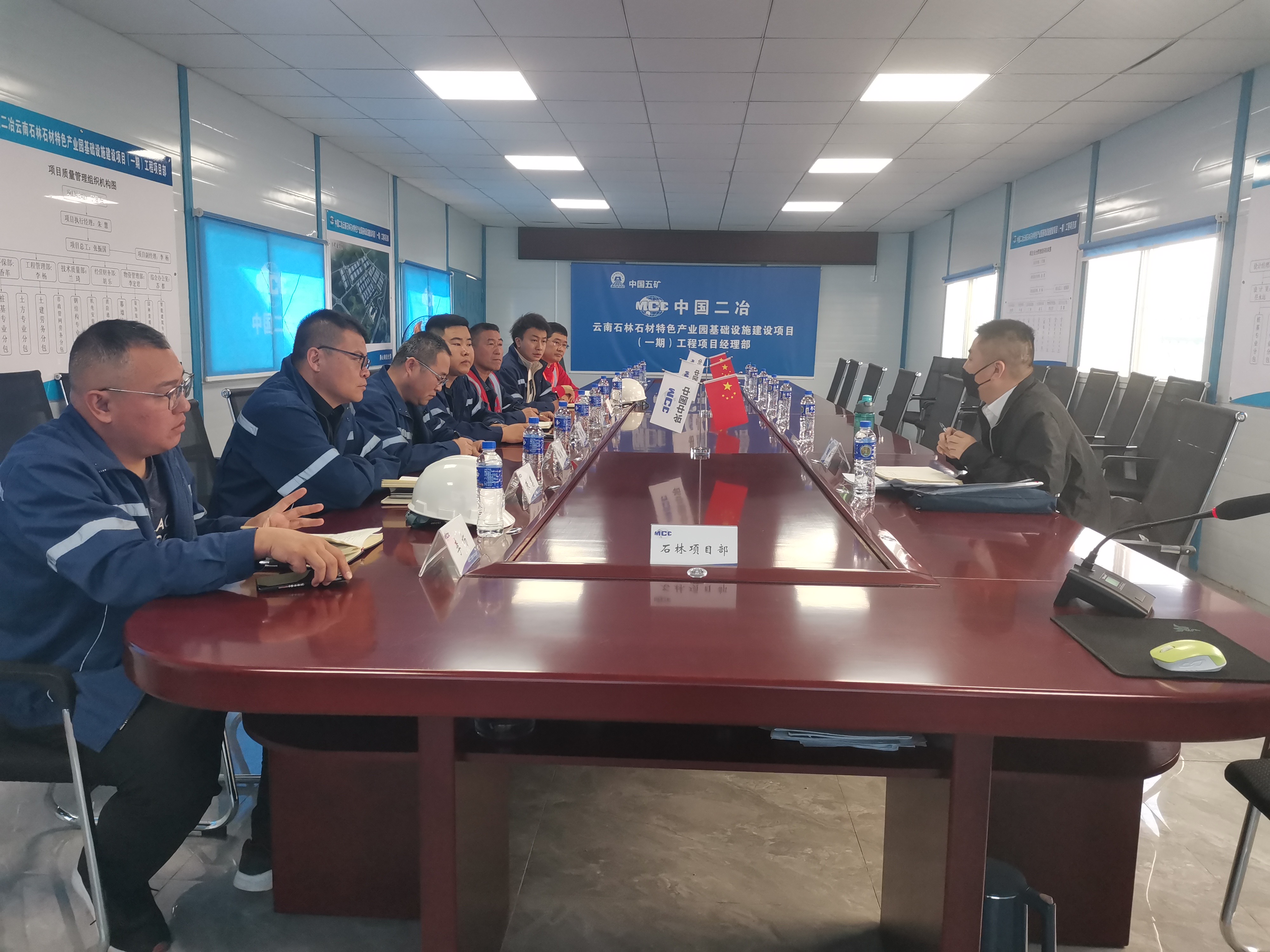 检查结束后,在项目会议室召开了专题会议。会上,公司安全生产监督管理部管理人员首先对石林项目的现场安全生产管理工作表示高度的认可,并提出具体要求,一是要根据本次检查出的问题进行及时整改落实,确保机械设备、临电、临边防护、脚手架等能安全可靠地使用,为进场工人提供安全的施工环境;二是建议组织开展施工现场应急演练工作,确保快速有效地应对现场发生的突发状况;三是要继续保持工人进场施工前的安全教育、交底及培训等工作,增强工人安全操作意识,做好自我安全防护。