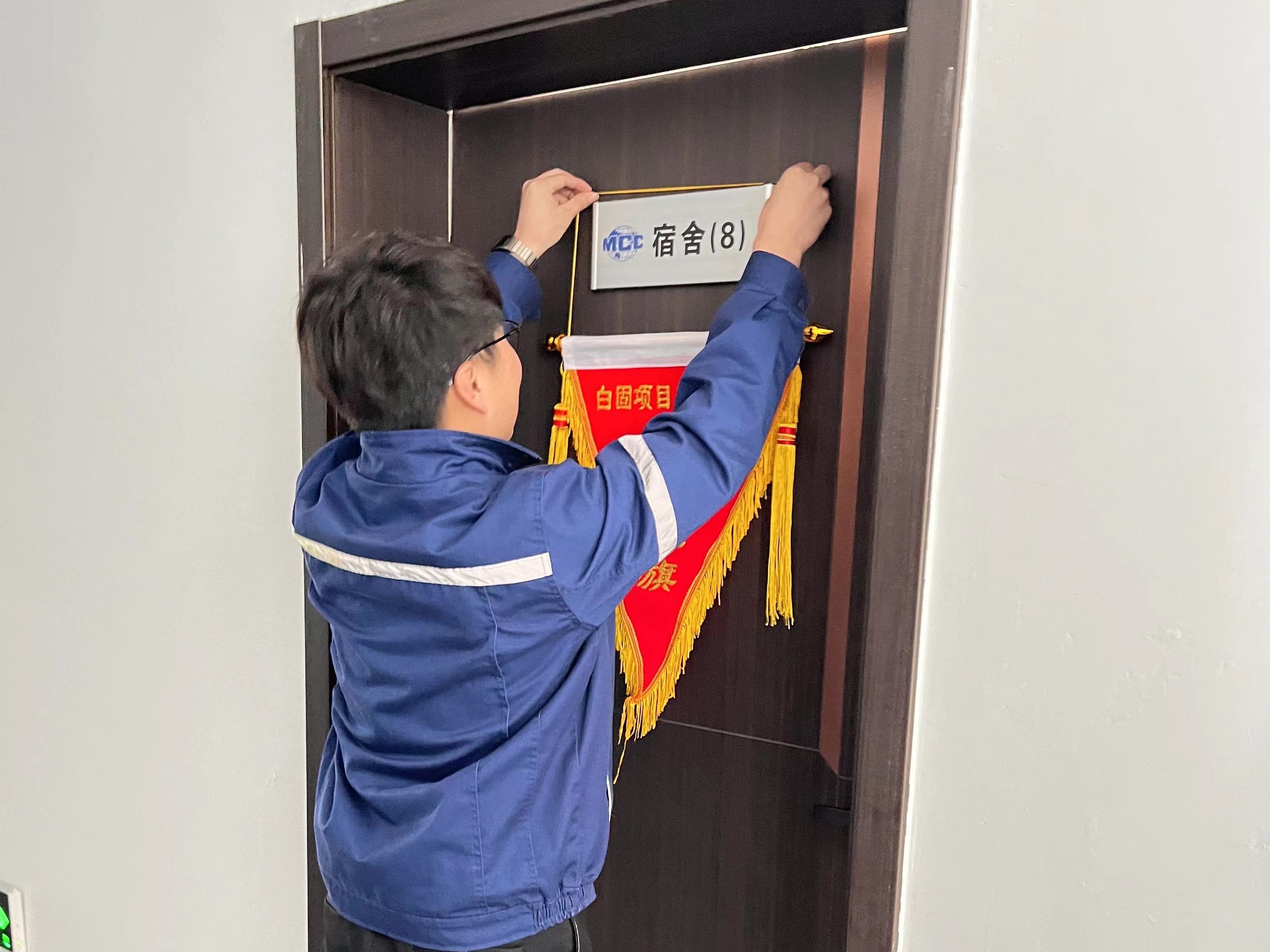 检查过后,项目部评选出了优秀宿舍、优秀办公室各一间,并由项目副经理为优秀宿舍颁发了“白固项目卫生评比流动红旗”。