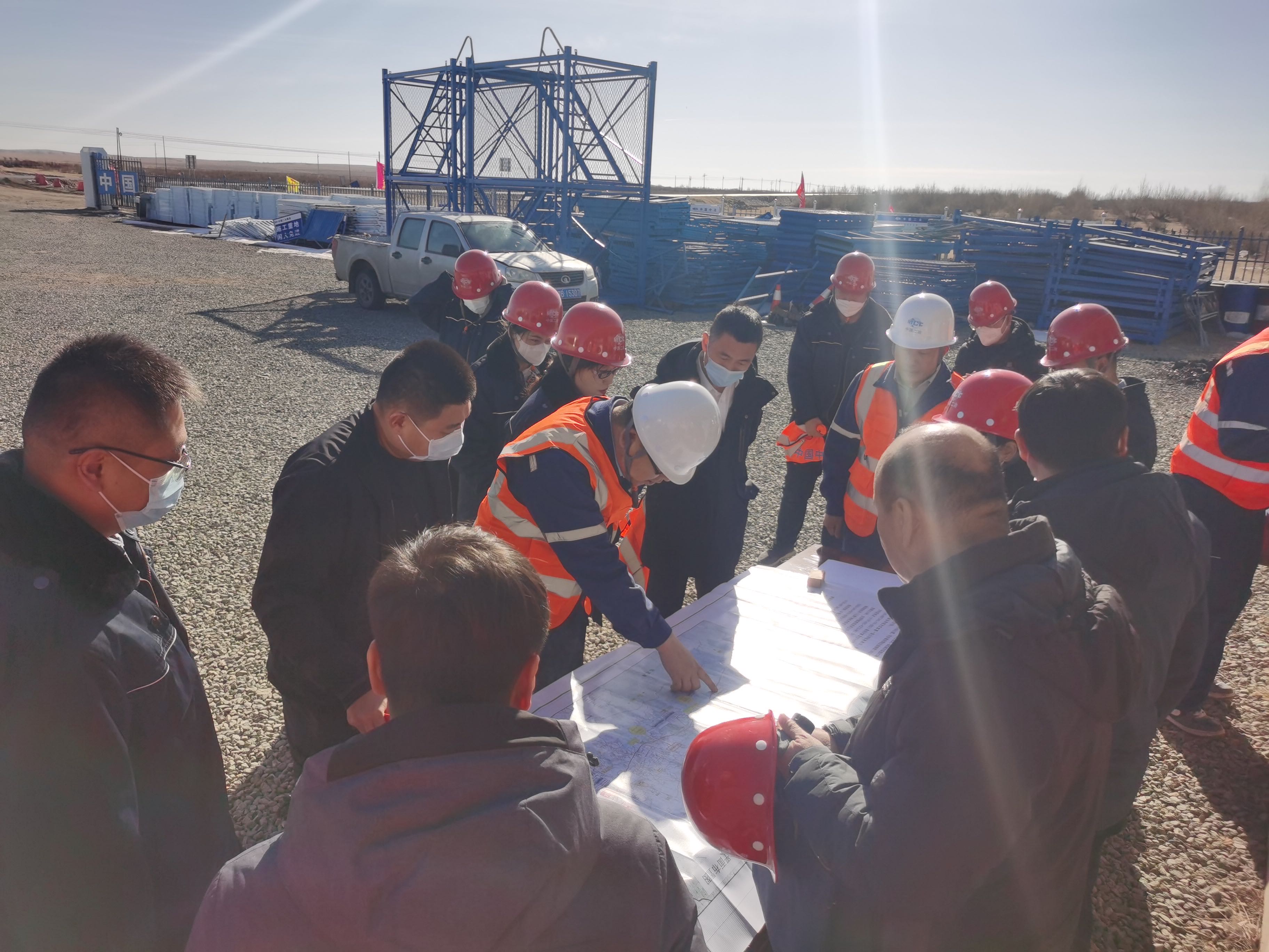 指导组一行首先前往白固项目西豪口大桥、K170场站、K148场站和项目标头施工场地,并在现场查看施工图,项目负责人对现场施工位置、环境、背景作简要介绍。