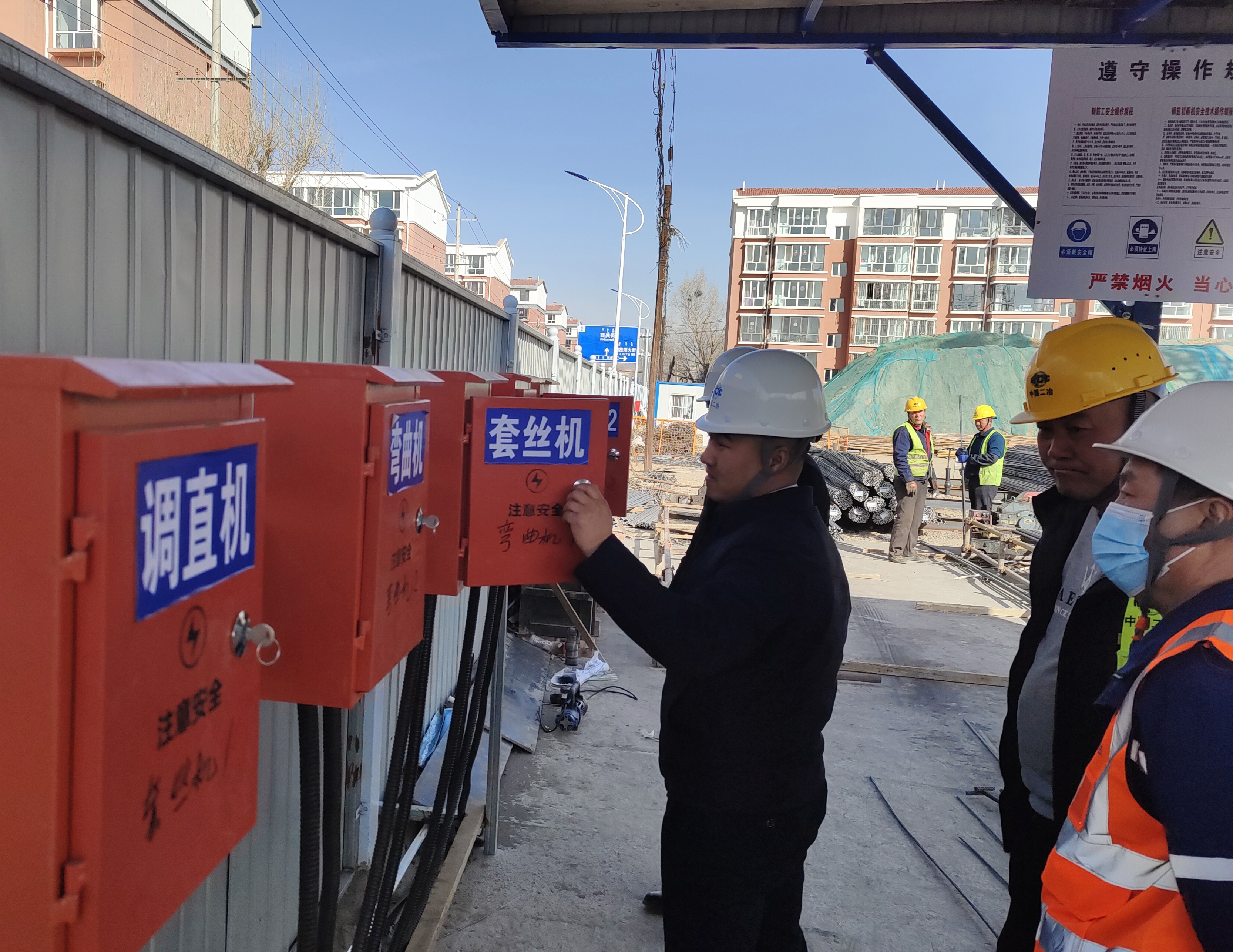 固阳县北魏人防自建工程项目位于固阳县政府西侧,2022年8月28日正式开工,人防建筑面积3252.71平方米,为固阳县重点建设项目之一。目前现场处于基础施工阶段,人员集中,临时供电的安全性显得尤为重要。检查组一行首先深入施工现场,查看了临时供电三相五线制和三级配电二级保护的设置情况。随后对配电箱及开关箱是否设置了空气断路器、是否一机一闸、现场防雷接地情况、固定设备线缆和临时供电线缆是否有保护管等进行仔细检查。针对临电安全工作,检查人员要求项目一定要坚持不懈从严落实,确保现场的临电安全。