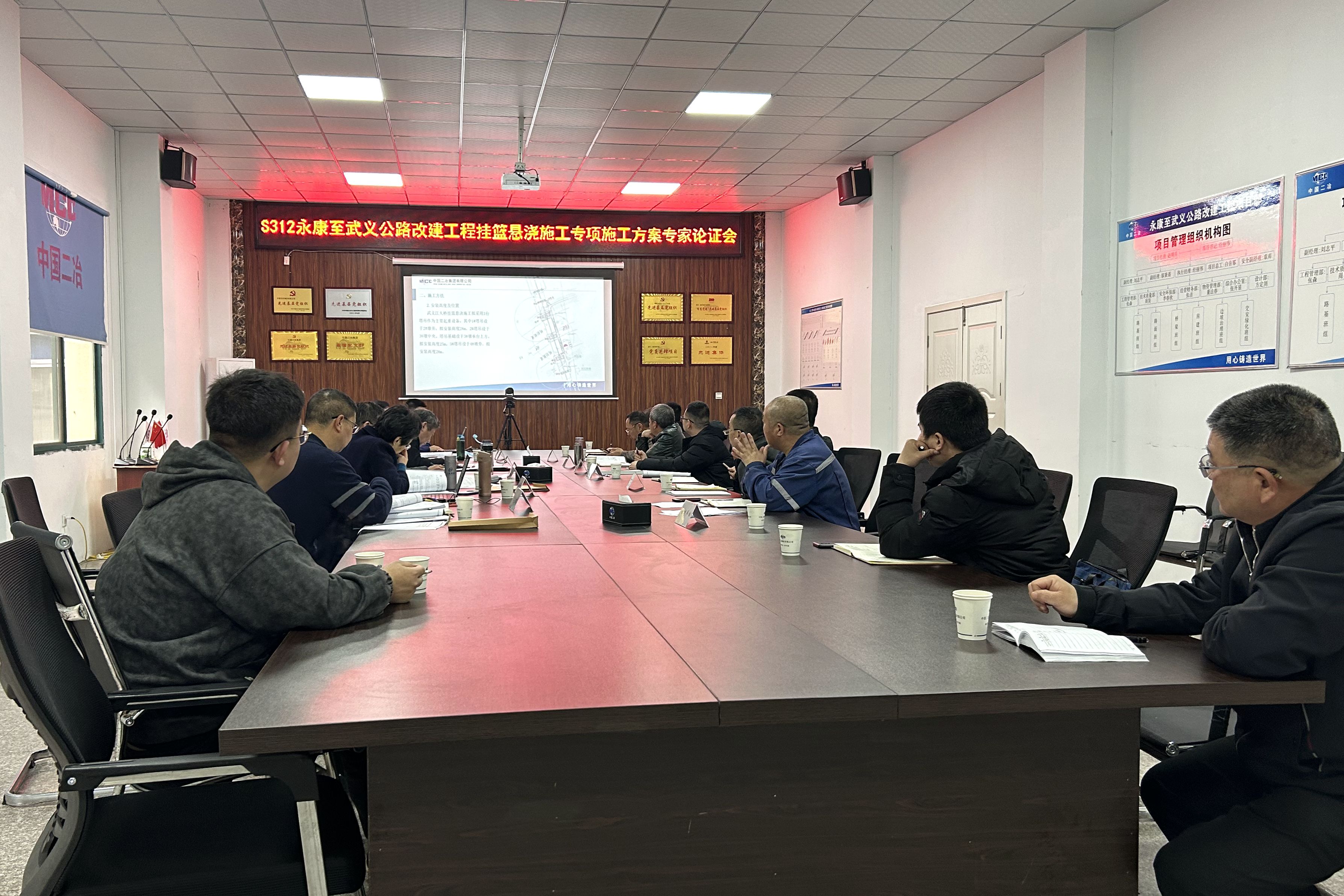 会上,该项目部负责人就工程概况、现场情况、施工环境及挂篮悬浇施工专项施工方案进行详细汇报;专业设计院就施工方案中结构参数进行受力复核验算,并提供相关数据资料供与会人员论证交流。专家组对专项施工方案进行了认真、细致的评议,就连续箱梁施工工艺、危险因素分析及施工安全保障措施等方面提出评审意见,并对施工过程中关键环节及注意事项提出了建设性意见。专家组成员一致认为该项目部编制的武义江大桥连续箱梁挂篮悬浇专项施工方案内容较为齐全,施工总体部署合理,基本可行,在作进一步修改完善,按程序报批后可用于指导现场组织施工。