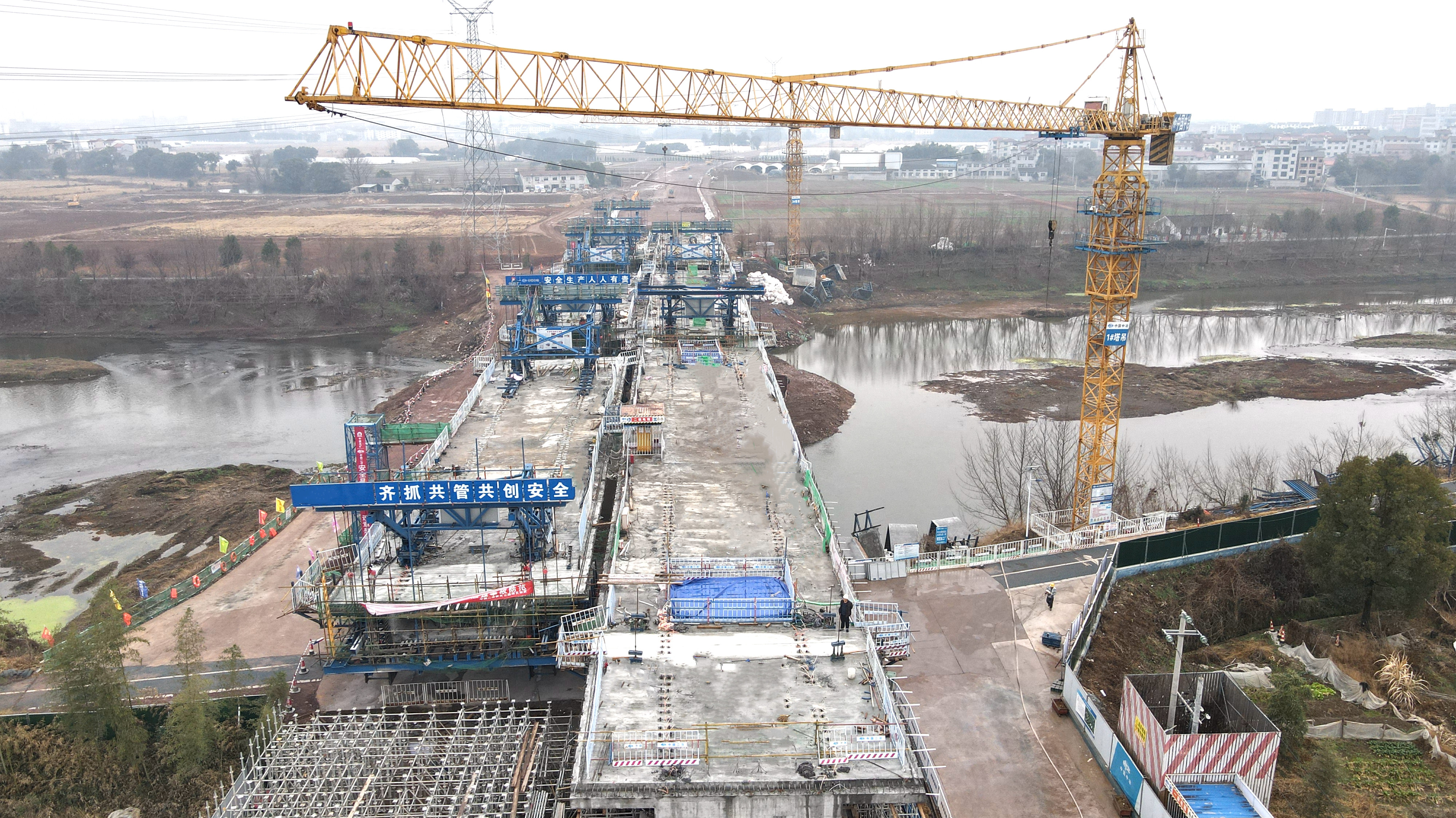 武义江大桥是项目重点控制性工程,全长268.2米,为一级公路桥梁,全桥共6个合拢段,其中边跨合拢段4个、中跨合拢段2个,合拢顺序为先边跨合拢、后中跨合拢。
