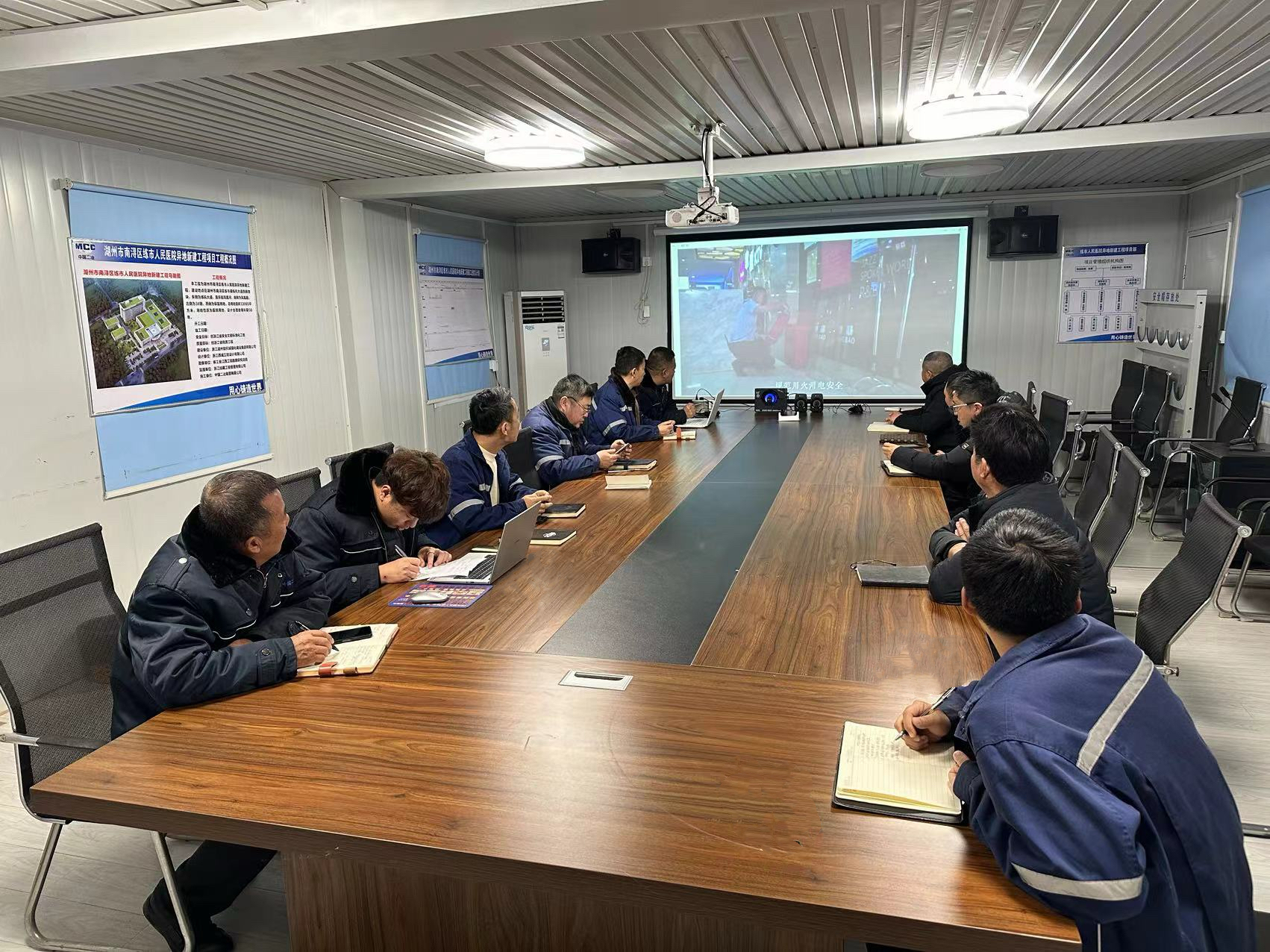 2月28日,湖州项目部召开复工复产会,就节后顺利复工各项准备工作进行讨论部署,同时由项目部门领导班子牵头组织复工复产安全检查,对现场及生活区临边围护、临时用电、消防设施等进行全面地排查;对大型机械设备安排专业人员进行检修、维护。为复工复产工作做好安全保障。项目部全体成员、项目各参建单位管理人员参加。