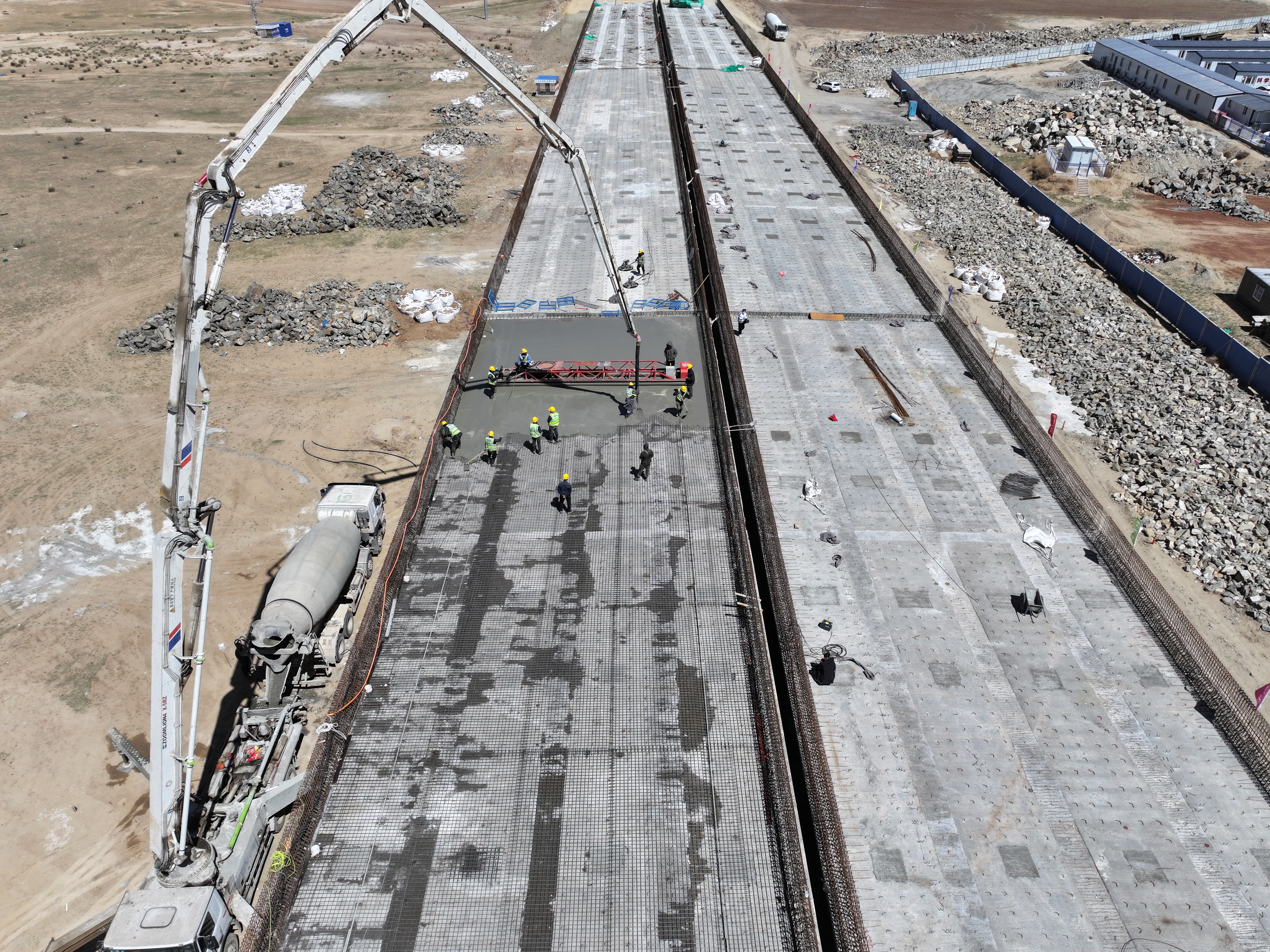5月16日,路桥分公司白固公路项目部西豪口大桥全面进入桥面铺装施工阶段。铺装采用C50现浇混凝土,经过5小时的连续浇筑,西豪口大桥桥面铺装第3联混凝土顺利浇筑完成。