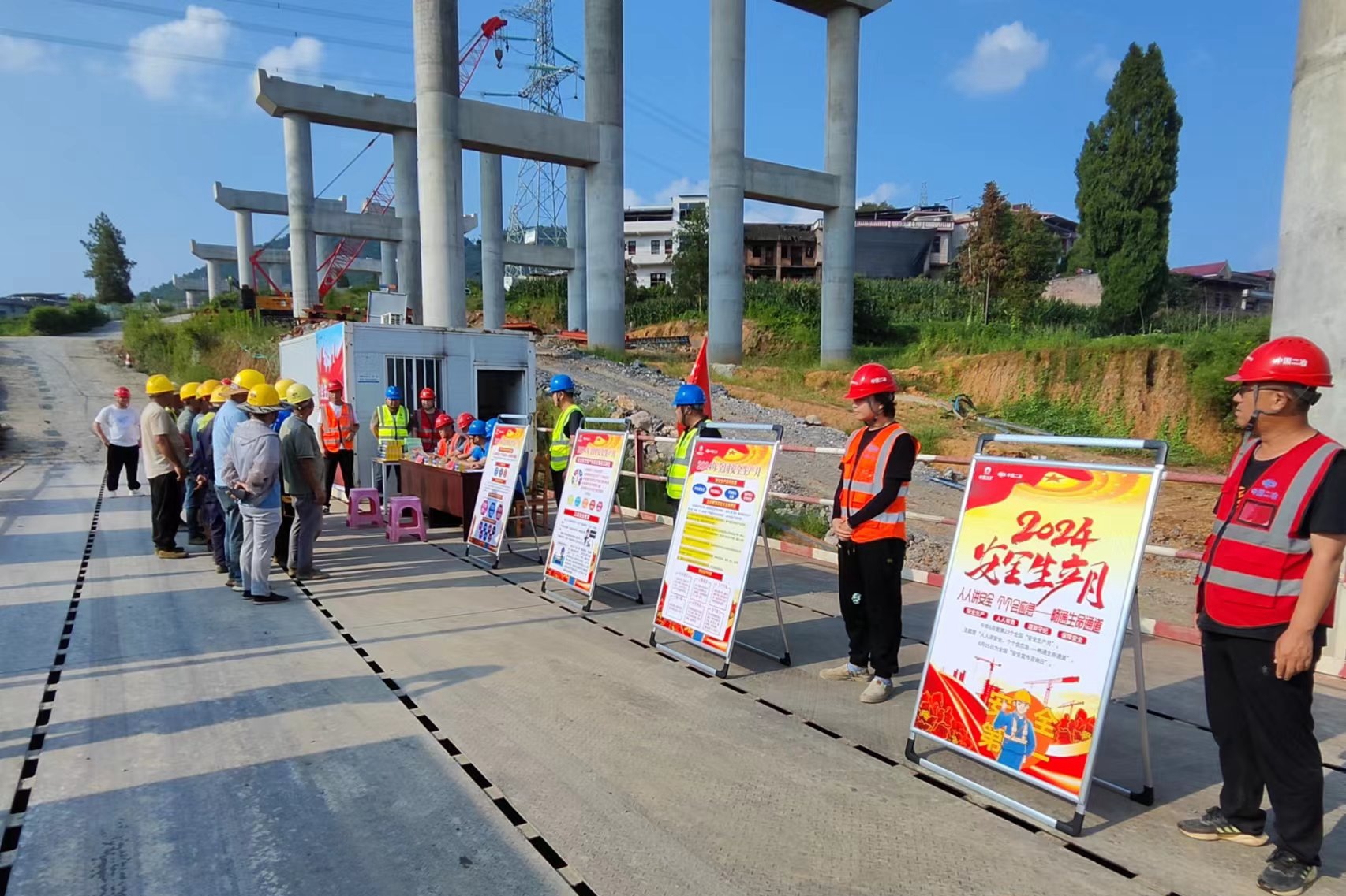 在湖南G59新新高速项目周家赧水特大桥钢栈桥施工现场,项目部通过悬挂横幅、发放安全宣传手册、设置咨询台、讲解施工安全关键点等形式,宣传安全生产法律法规及应急避险常识等。分公司安全总监坐镇咨询台,以其丰富的业务知识及施工现场安全生产管理经验逐一解答作业人员提出的问题,为工友们“把脉治疗、对症下药”,真正夯实参建人员“安全第一”的思想意识。活动期间,项目部还贴心为一线作业人员送上清凉物资,鼓励大家齐心协力斗高温、战酷暑、保安全、促生产。