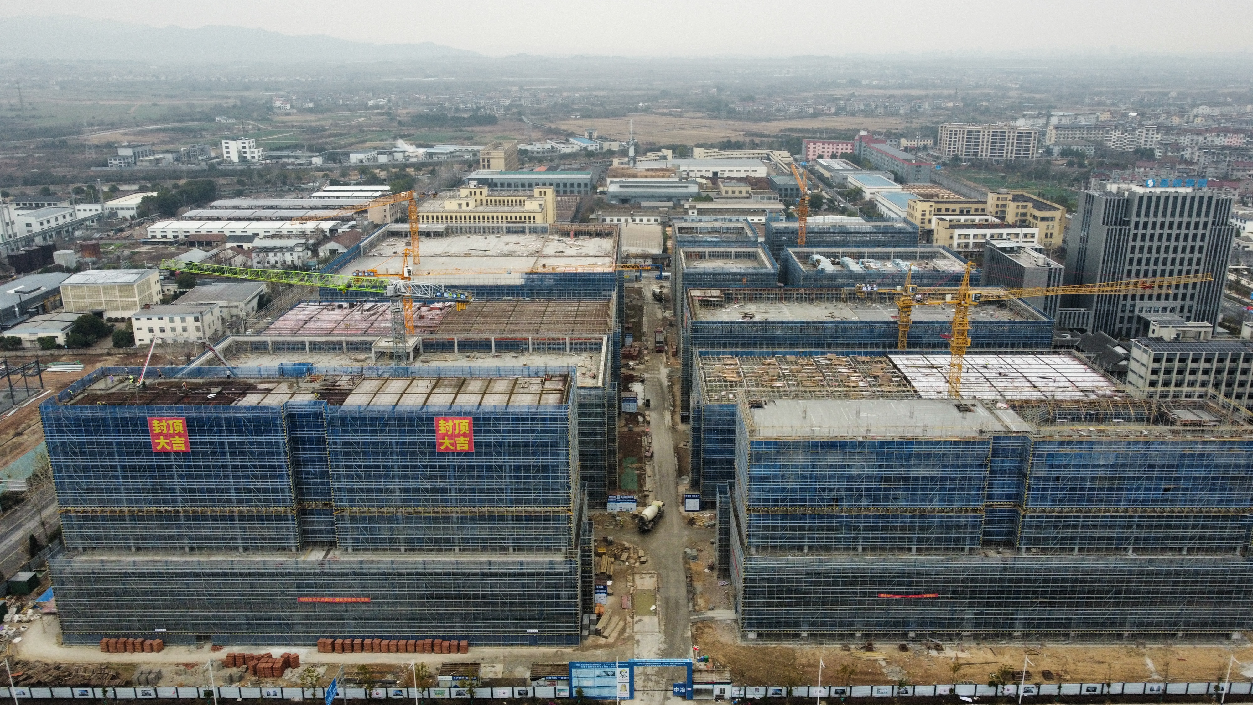 1月25日,由中国二冶承建的廿里小微园二期项目四栋主体结构全部顺利封顶,项目建设取得阶段性重大成果,正式迈入二次结构、装饰装修全面推进阶段。