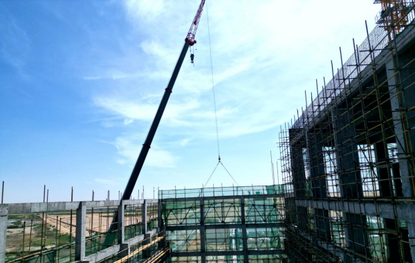 7月15日,内蒙古分公司中盐内蒙古化工节能降碳升级改造项目汽轮机车间钢屋架首吊作业顺利完成。