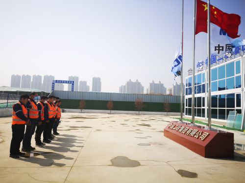 泰山文旅健身中心项目施工二标段项目部积极响应国家号召,按照集团公司部署国旗降半旗,项目部管理人员于4月4日上午10时整,为抗击新冠肺炎疫情斗争牺牲烈士和逝世同胞进行哀悼。