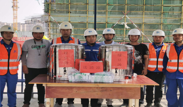此次“送清凉”活动由项目党支部书记刘大伟、副经理郭成刚、祝欢带领,将清凉的绿豆汤、软甜的白糖和消暑的藿香正气水发放给各劳务项目管理人员,并叮嘱各劳务合理安排施工时间,错开高温时段,牢固树立安全意识。