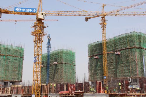 13日傍晚时分,在曹县安置房项目的施工现场,风雨声中夹杂着嗡嗡的混凝土震动棒声,咚咚的泵送车声,再次吹响了大干冲锋号。