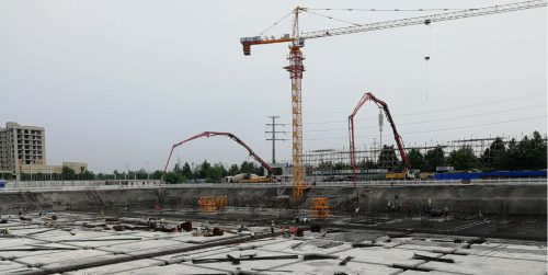 曹县智慧农谷建设(EPC)一区智慧农业服务中心项目位于山东省菏泽市曹县,总建筑面积63441.23平方米,建筑高度97.200米,主楼长71.4米,宽22.2米,浇筑底板厚度1.2米,属高层公共建筑,结构形式为框架接力墙结构。项目共27层,分为地下1层及地上26层,本项目建成后将主要用于酒店等商业用途。智慧农业服务中心项目7月3日上午,主楼筏板混凝土开始浇筑,历经40多个小时的奋战于7月4日夜晚完成浇筑。此次浇筑方量共计3118立方米,是继基坑开挖完成后的又一重大工程节点,标志着项目主体施工全面展开,项目建设正式吹响冲锋号角。主楼筏板混凝土浇筑的顺利完成,不仅完成了项目建设中的重要节点目标,也为项目后续建设奠定了坚实基础。作为曹县备受瞩目的重点项目,本项目建成后将以高层公共建筑综合体的崭新面貌,成为曹县城市新地标。