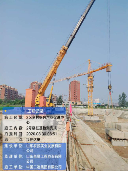 经过20天的连续奋战, 山东区域分公司曹县智慧农谷项目于8月30日完成三区2号楼桩基检测,为下一步项目施工奠定了良好基础。