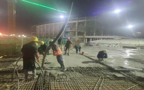 此次封顶工作,泰山文旅健身中心建设项目部全体人员充分发扬了不怕苦、不怕累的无畏精神,接连克服了泰安地区-20℃的低温天气、疫情防护、环保一级响应等诸多困难。全员日夜坚守、轮流值班,经过18小时的连续奋战,共浇筑混凝土950方,并按照冬季施工方案做好相应保温措施,实现了项目B区主体结构的顺利封顶。