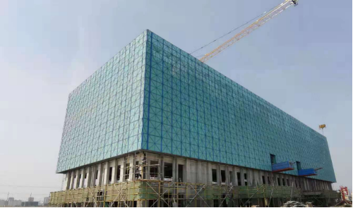 4月13日上午,中国二冶集团山东分公司曹县智慧农谷项目一区附着式升降脚手架顺利完成首次提升。