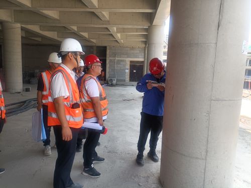 7月10日,公司委派房地产开发公司总工程师庞海清、技术质量部部长荣晓光、项目部总工程师杨帅组成混凝土质量检查组到山东分公司泰山文旅健身中心项目部进行了混凝土施工质量专项检查。