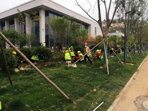 项目部于5月底全面完成十个绿化片区的施工任务,总绿化面积近16万平方米,其中常绿苗木9种997棵、落叶苗木38种3212棵、灌木11种2036棵、地被植物19种116571.5平方米。6月底项目部组织技术人员详细统计了园区绿化植物成活覆盖率情况,乔木成活率达到96.3%,灌木成活率达到98.7%,地被植物成活率达到98.6%,草坪成活率达到98.2%。7月初,对园区部分未成活的苗木和草坪进行了补植,保证了绿化工程的全面完工。