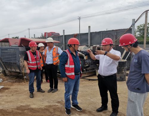 近日,随着暑期汛期的到来,为进一步加强施工现场安全生产监管力度,消除事故各类隐患,防止和杜绝安全生产事故和安全事件的发生,山东分公司安全总监魏运享一行到枣庄山亭六网一厂项目部检查指导工作,项目部相关人员陪同。