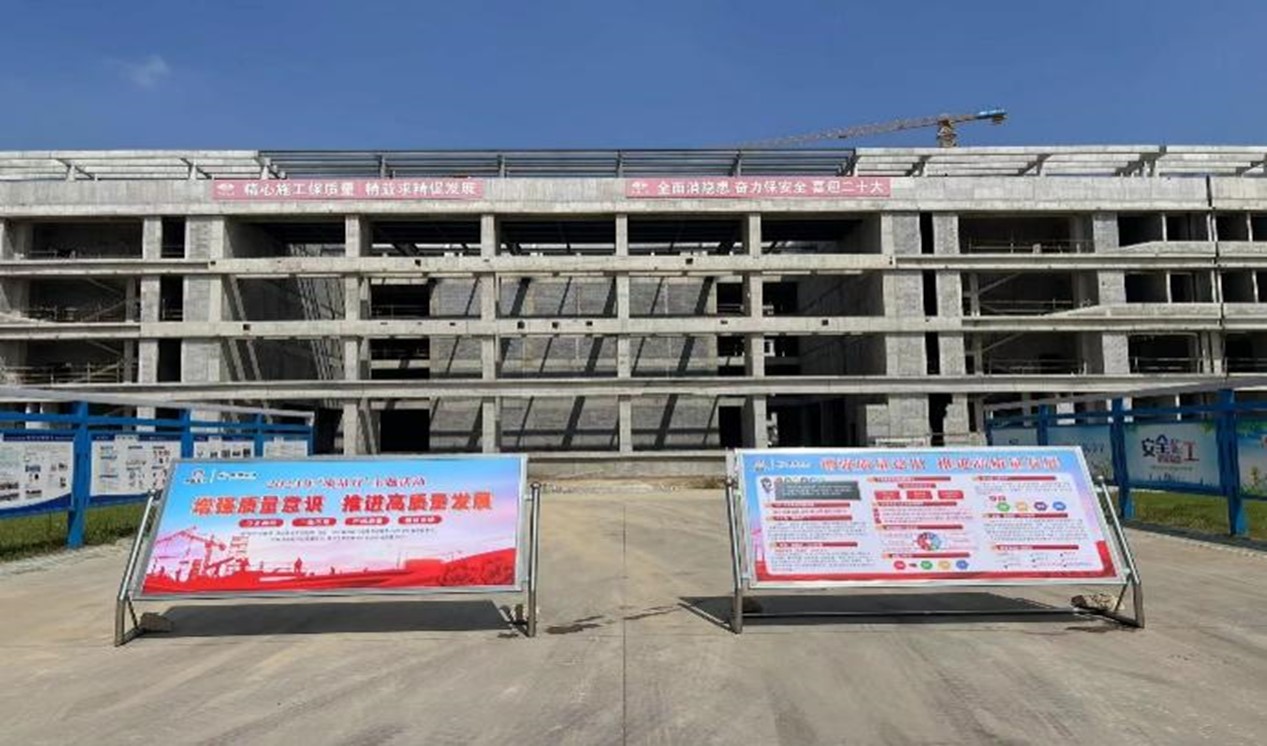 强化质量宣传,营造质量月氛围。为进一步加强施工质量建设,更好推进质量月活动,项目部设计了内容丰富的“质量月”宣传展板,以质量为主线,重点融入技术管控、安全生产等要素,通过图文并茂的形式,把质量月的由来、主题等内容进行集中展示,以引导项目人员全面加强质量监管,强化生产质量意识,打造质量亮点。