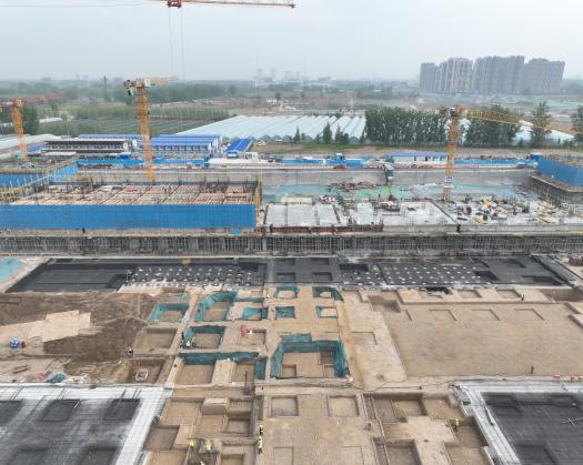 4月19日,聊城市中医医院新院区建设项目工地现场机械不停运转,进行基础垫层、筏板浇筑、钢筋绑扎、标准层施工等工作,各单体全力冲刺封顶目标。