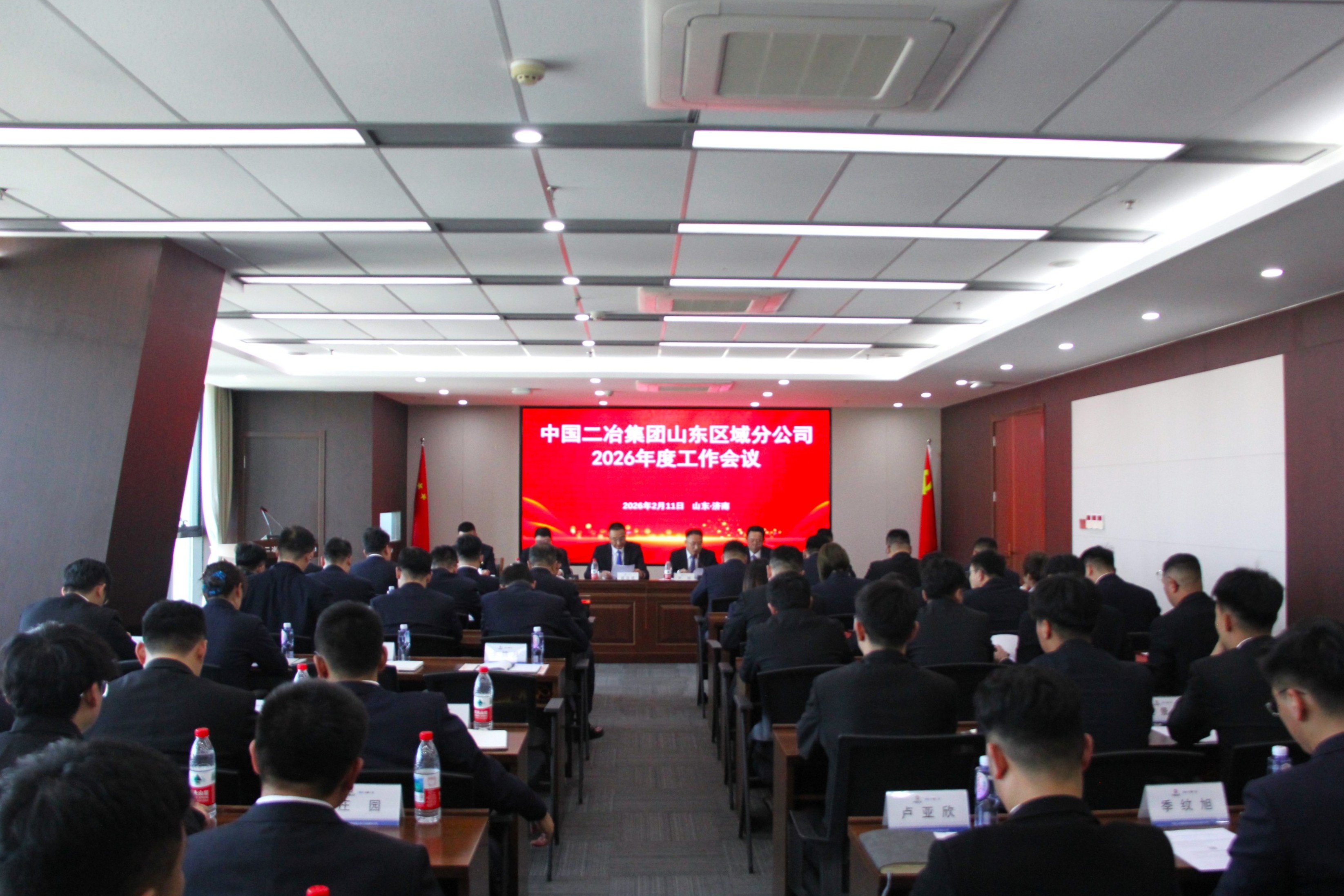2月11日,山东分公司2026年度工作会议在济南召开,会议深刻学习贯彻党的二十大与二十届四中全会精神,传达落实中国五矿、中国中冶、中国二冶年度工作会议精神以及各项决策部署,总结2025年主要工作,部署2026年重点任务。分公司总经理郝宝成作工作报告;党委副书记、纪委书记尹旭主持会议并传达上级工作会议精神;总工程师陈曦宣读先进表彰决定;总会计师叶贤斌宣读考务奖励决定。
