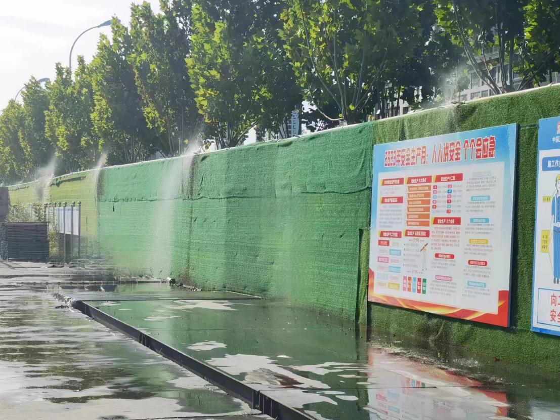 为促进现场规范文明施工,项目部多措并举,增强现场人员安全生产意识,提高安全文明施工管理水平,全力打造文明和谐的施工环境。通过制定项目现场平面布置图,结合现场施工条件,利用有限的场地空间,合理安排材料堆放场地,对办公场所进行统一规划,打造简洁、高效的工作环境。在项目现场设置连续封闭式四米围挡、全包洗车池、围挡喷淋系统、办公区设置应急逃生杆等,并始终坚持以“六个百分百,两个全覆盖”为环保工作的日常管理模式,对现场的裸土、建筑垃圾进行100%覆盖,现场做到动土时持续洒水冲洗路面,现场不动土时定时洒水降尘,以实际行动助力打赢蓝天保卫战。
