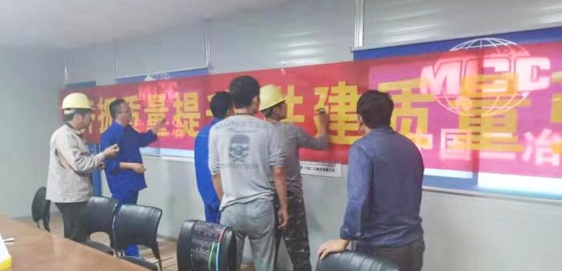 在活动启动仪式上,项目经理部经理传达了“质量月”活动的重要性,明确了“质量月”活动的目的、意义及具体要求。同时,提出了项目经理部质量管理的工作要求,落实各项工作任务,在启动会后,项目经理部悬挂了宣传条幅。