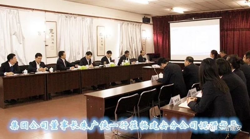 12月22日下午,集团公司党委书记、董事长朱广侠一行莅临建安分公司调研指导工作。集团公司总经理高文华、总会计师吴金玉及人力资源部部长高盟、办公室主任韩国强、计划财务部部长刘国君、企业策划与管理部部长张继勇陪同。