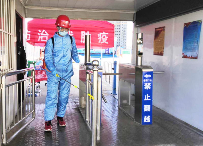徐家楼项目部一方面克服了食宿上的困难,在二期项目部进行集中隔离,另一方面购买了口罩、酒精、84消毒液、测温枪、隔离服等一系列防疫物资进行现场防疫工作。