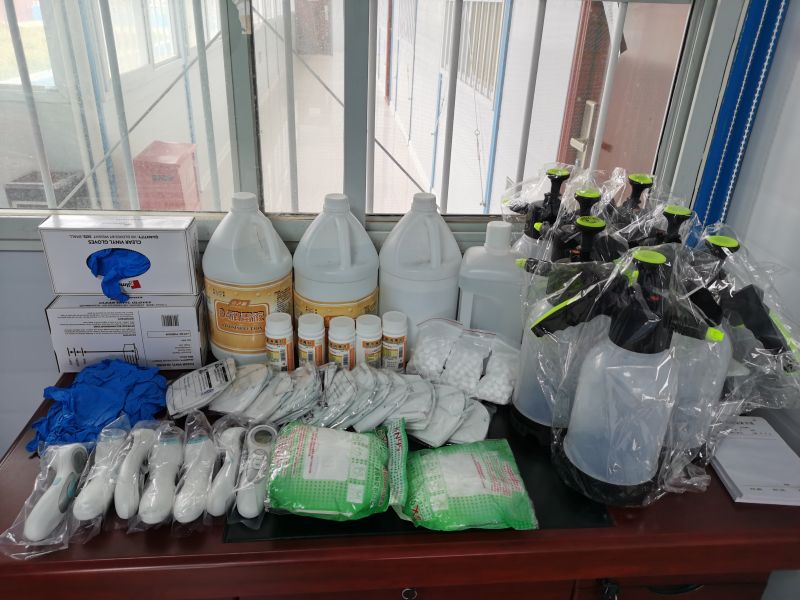 物资管理部多渠道、多方式紧急采购红外线体温测试仪、口罩、一次性手套、各类84消毒液和洗手液、喷壶、独立餐具以及其他应急物资,及时分发给有关工作人员及职工。