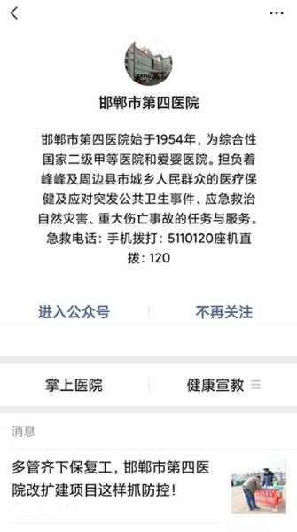 建设单位河北省邯郸第四医院官方微信平台报道中国二冶河北省邯郸市第四医院改扩建项目《多管齐下保复工,邯郸市第四医院改扩建项目这样抓防控!》