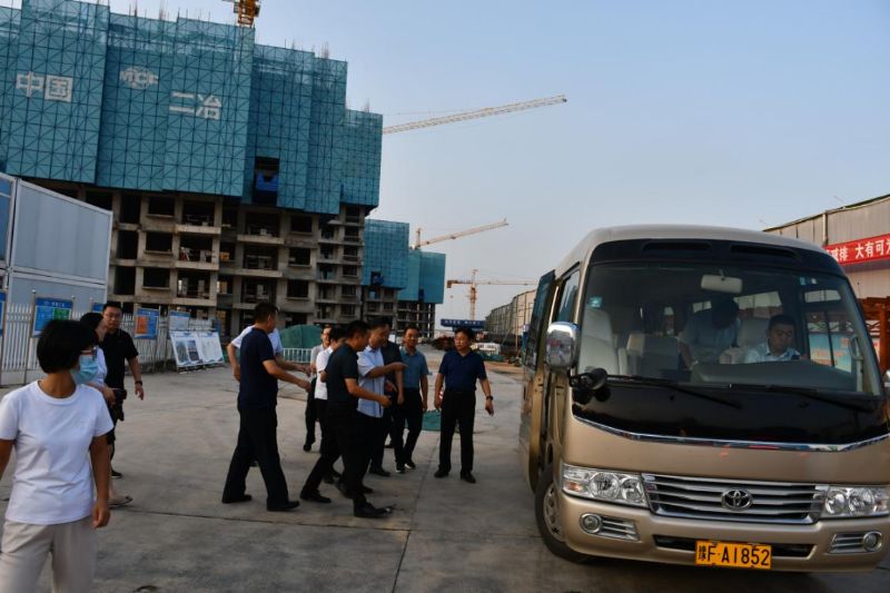 王玉国一行首先来到了鹤壁项目部大门口的展板前,详细的向项目经理了解了项目目前的总体规划、项目施工进展情况、项目工期及项目面临的困难和存在的问题等情况。项目经理单小军就中国二冶鹤壁项目部在鹤壁市旗滨新区的发展前景及目前项目施工进展情况进行了认真汇报。在听取汇报后,王玉国对中国二冶鹤壁项目部目前取得的成绩给予了充分肯定。随后,他指出:鹤壁市开发区全域城市化项目是鹤壁市的重点民生项目,项目部全体员工要提高政治站位,高度重视,在确保工程质量的前提下,全面有序推进项目建设。