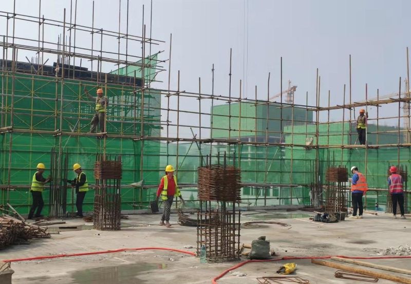 10月1日是国庆假期的第一天,在如意东路便民服务中心项目的施工现场依然是一片繁忙景象。项目整体分为一期与二期,项目一期主体结构已全部封顶,当前正进行抹灰批白、顶板及外墙保温铺设及幕墙龙骨安装工作;项目二期四段东跨已出正负零、三段东跨已施工至地上二层、二段东跨正进行筏板钢筋绑扎、一段东跨防水及防水保护层已浇筑完成,搭架体、绑钢筋、支模板、焊龙骨、粉内墙、贴保温、批顶板,在施工现场的每一个角落,都能看到忙碌的身影。