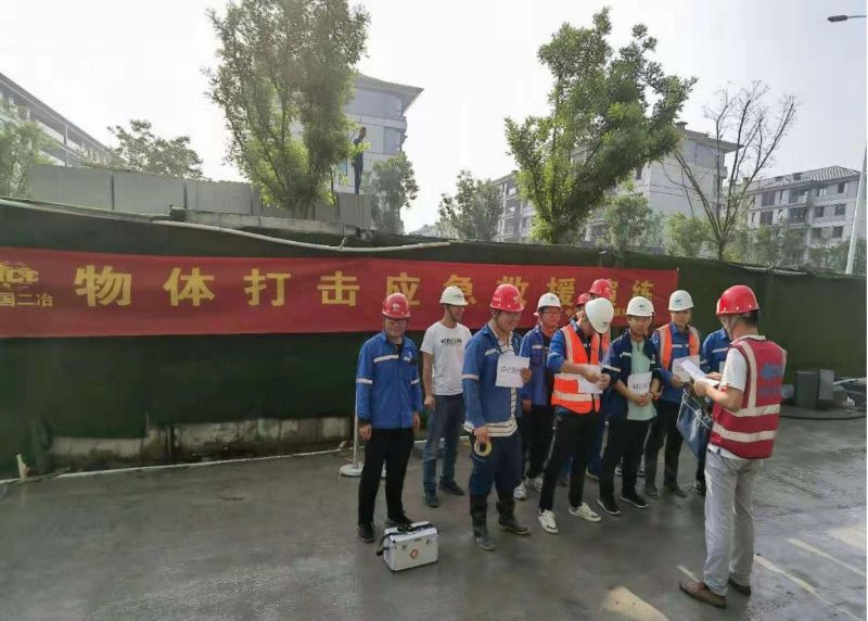 演练中贯彻实施统一领导、综合协调、分级负责的应急处置原则。项目部指挥部在接到物体打击事故后,立即启动专项应急预案,各应急救援小组火速赶往事故现场控制形势,并对受害人进行救援,确保人员财产安全。