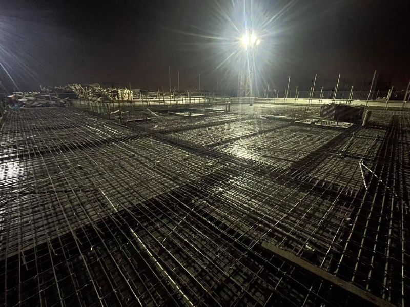 自年后复工以来,受疫情及管控影响,项目经理部在诸多不利因素的前提下,精心组织、科学筹划、团结协作、力排众难,把现有资源最大化利用。在3月3日顺利的完成了二期第二块筏板的混凝土浇筑工作。抢工期、保节点,打好施工攻坚战,施工现场的管理人员和工人师傅们,迎着初升的太阳,与节点时间赛跑,搭架体、支模板、绑钢筋,集人力物力于一体,全力推进项目建设。在筏板浇筑前,现场的技术管理人员对工人师傅们进行了技术交底,在为期11个小时混凝土浇筑过程中,严格过程管控,保证施工质量,现场负责人、技术质量、安全管理人员坚守工作岗位,安全质量齐头抓。