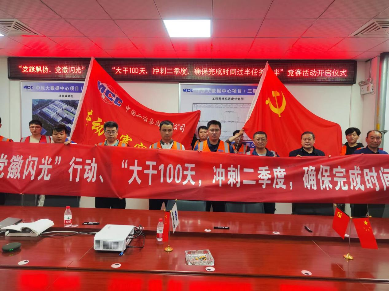 4月18日,中原分公司中原大数据中心项目三期开展“党旗飘扬、党徽闪光”行动、“大干100天,冲刺二季度,确保完成时间过半任务过半目标”劳动竞赛活动,项目全体管理人员及各分包单位负责人参加会议。