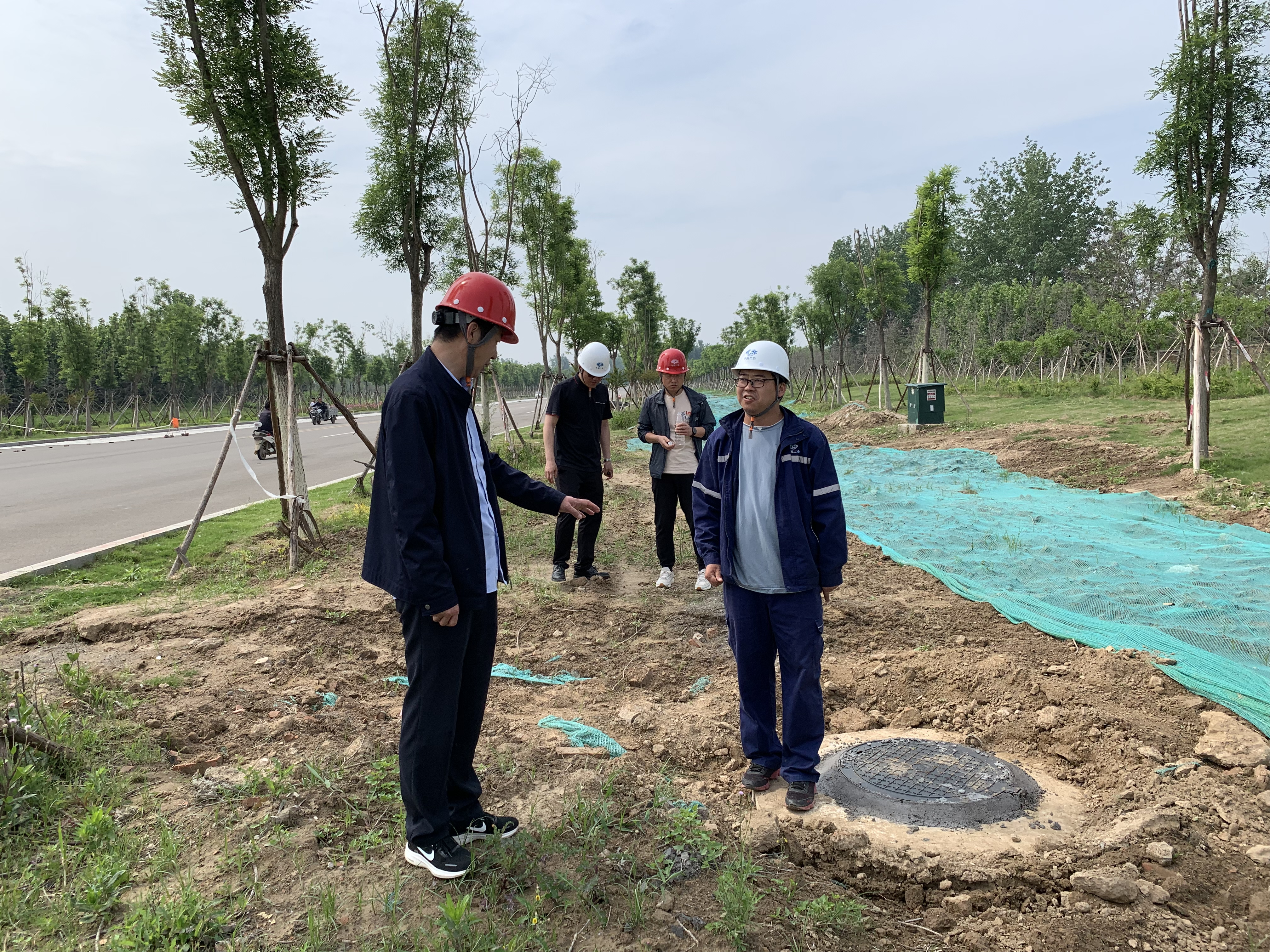 2023年5月11日,中原分公司总工程师李占华到商丘市政管网项目检查指导工作,项目管理部部长马胜和人力资源部部长刘丹陪同检查。