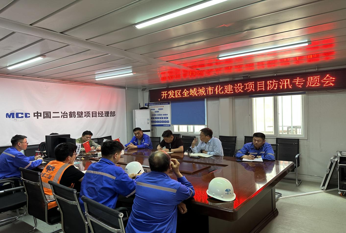 为切实做好施工现场的防汛工作,会议要求,鹤壁项目部管理人员结合本单位实际情况,制定并完善防汛应急预案,进行防汛应急演练活动;成立防汛应急小组及划分职责坚持“预防为主、安全第一,综合治理”的原则;储备足量的防汛物资,持续加强对防汛指导检查,开展防汛隐患自查工作。