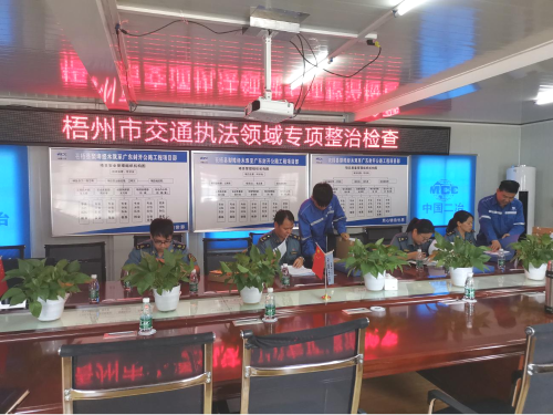 6月9日上午,梧州市交通运输综合行政执法支队安全生产督导小组一行4人,在梧州市交通运输综合行政执法支队大队长陀柠华的带领下莅临苍梧县梨埠经木双至广东封开公路工程项目调研指导安全生产工作。