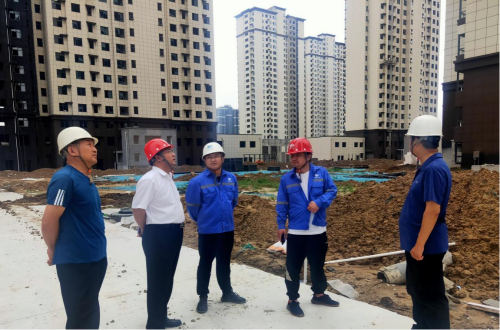 6月17日,新型建筑分公司总经理王宏斌到周口市运粮河畔项目部检查指导工作。周口市运粮河畔项目部领导班子等人陪同。