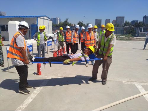 演练由项目经理杨虎为总指挥,设置通讯联络组、应急抢险组、警戒疏散组、医疗救护组、后勤保障组、事故调查组。模拟场景为工人生活区发生火灾、造成一名工人受伤被困、在伤势情况不明的情况下,第一发现人立即上报项目经理,项目部立即启动应急救援预案,各小组及时到达施工现场进行处置。整个过程开展达到了预期效果,演练结束后召开了总结评价专题会。