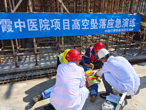 山东栖霞中医医院项目作为中国二冶冶金分公司转型发展路上第一个民建项目,安全警钟长鸣。结合正在开展的党史学习教育,项目部在抓施工进度的同时,以开展安全教育、安全工作巡查、观看安全警示教育片及组织开展高空坠落应急“实战”演练形式,不断增强职工安全意识,推进安全生产。对高空交叉、临边孔洞安全防范和防火、用电、特种作业、交通安全和夏季餐饮卫生、疫情防控常态化等工作重部署、常安排,严检查。项目部安全工作负责人、安全员每天坚守施工现场,加大安全巡查力度,防患于未然。