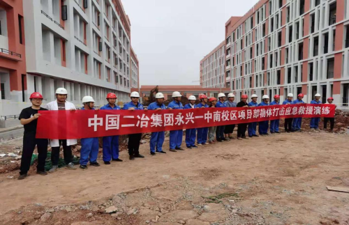 6月23日,钢构分公司永兴一中南校区项目部举办物体打击事故应急预案演练活动。