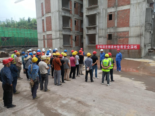 为强化项目部安全生产管理,进一步提高现场施工人员对突发事件的应急处置能力,6月26日上午,资阳安置房项目在施工现场组织各班组人员以及全体项目管理人员开展了高处坠落应急演练活动。