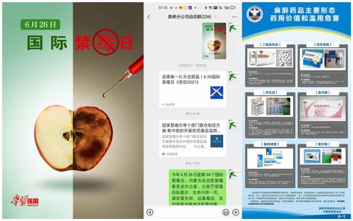 为开展好禁毒宣传教育活动,该公司收集编辑了1幅主题宣传海报、3幅《麻醉药品主要形态药用价值和滥用危害》和5幅《精神药品主要形态药用价值和滥用危害》禁毒知识海报,筛选了国家地方3篇禁毒专题宣传文章,利用覆盖公司全体员工的微信动态群开展宣传活动。
