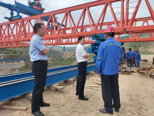 检查中,郭泗东一行首先深入通定项目唐家岔枢纽立交施工现场,详细检查唐家岔枢纽立交钢箱梁的安全质量及施工进度情况,同时针对新建5号梁场存在的问题给出了指导性意见。随后继续出发前往唐家岔枢纽立交A、B匝道龙门吊施工现场、114梁场、安子坪大桥箱梁架设等项目施工现场,详细了解影响现场施工进度的重点、难点问题,对现场施工存在的问题和不足之处进行了指正,对项目精细化管理提出了更好的建议。结合项目施工实际,郭泗东勉励全体员工要继续凝心聚力,克服困难,坚决打赢通定高速年底通车攻坚战。
